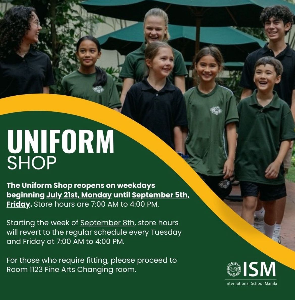 - The Uniform Shop is open on Tuesdays and Fridays from 7:00 AM to 4:00 PM (Closed during summer break)